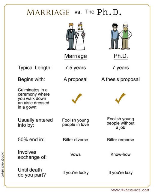 Coucou tout le monde, Je suis tombée sur cette image qui m'a beaucoup fait rire!! alors les scientifiques de cette communauté, qu'en pensez vous?? Mariage VS Ph.D.