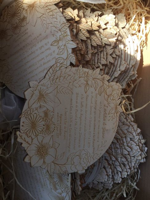 Coucou le soir girls! Ca y est j'ai reçu mes faire parts sur le thème du bois! Nous sommes trop contents!