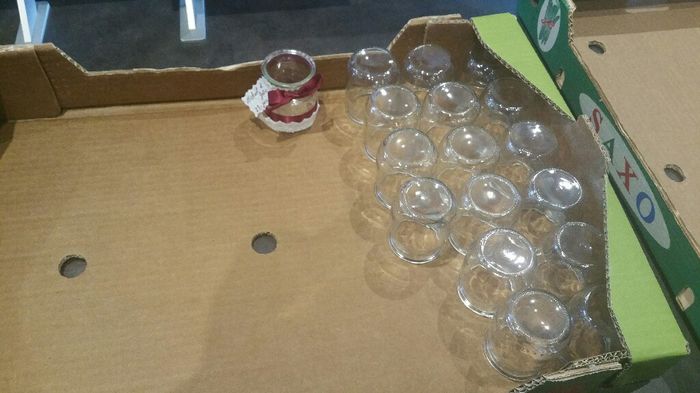 Et voilà j'ai trouvé 2 cartons (sortie de magasin) pour stocker mes contenants a dragées avant de commencer a les decorer, pour le moment j'en ai 17 il m'en faut 90 lol
