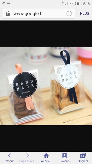 Bonjour à tous ! Donnez-moi votre avis : Nous réflechissons aux cadeaux invités et avons pensé aux cookies. Il y en aurait 2 ou 3 par invité. On cherche encore une boîte assez grand mais pas trop grande dans notre thème nature, kraft, dentelle. C'est...