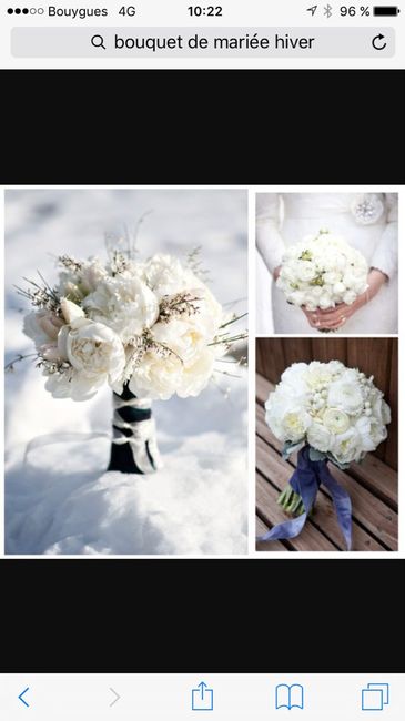 Bonsoir les filles ! Je suis triste ? Je n arrive pas a trouver qu est ce que je veux comme bouquet de mariee sur le theme de l hiver ! Qqun a des photos de leur bouquet ? Merci merci de votre aide