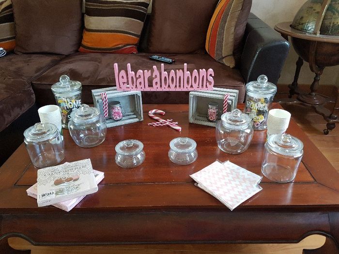 Et voilà premier test pour le bar à bonbons !!! Plutot contente ca devrait rendre bien avec les distributeurs de boissons et surtout les pots remplis de bonbons !