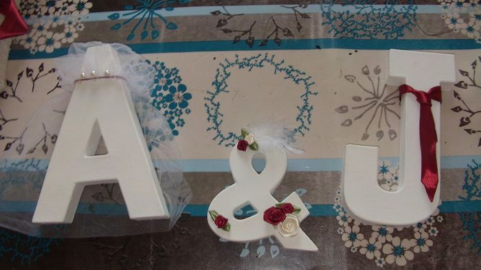 Coucou les Girls & Boys !! Encore un DIY de fait (le moins compliqué lol) : nos initiales sont customisées !! Voici le rendu, qu'en pensez vous ?? Nos initiales Nos initiales 2 La première photo est en contre jour ça ne donne pas terrible...