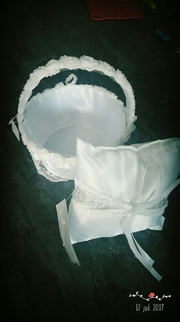 Salut es filles,je veux partager avec vous ma trouvaille du jour. le coussin et porte alliance chez Action prix défiant toute concurrence ,3,50€ vous en pensez quoi ?! Il est tout blanc et un petit noeud gris sur coussin....je pense rajouter un peu...