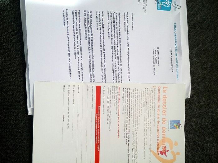 Hier c'était nos 1 mois de mariage et le hasard faisant bien les choses nous avons reçu le dossier d'adoption a remplir