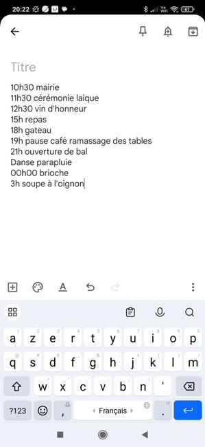 Bonjour, En préparation de notre mariage pour Mai 2026, je me questionne sur le programme. J'ai peur que les temps soient sous ou sur évalués. Voici ce que j'ai noté en sachant qu'il y a 15min entre la mairie et la salle où il y aura la cérémonie...