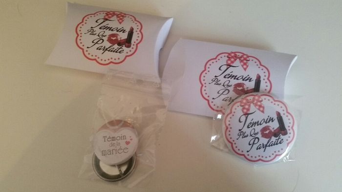 Bon j'ai commandé à 3 créateurs différents . badge témoins et petits miroirs témoins bien reçu . mais pas mes petits pochons .j'ai contact little market .ils me disent contacter le créateur . mais le créateur ne répond pas à mes mails .grrr alors...