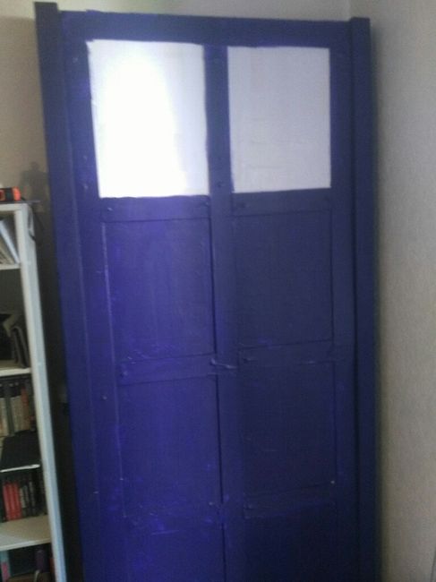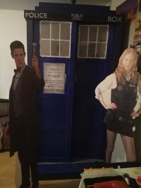 Coucou la commu Il y a une semaine ou deux j'ai mis des photos de la premiere partie de la deco et ben on la terminer notre TARDIS je suis trop contente du resultat Voci une photo Vous en pensee quoi ??