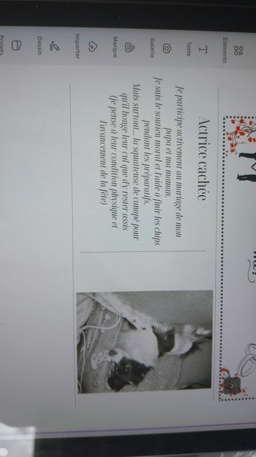 Bonjour à tous ! Je suis en pleine confection de notre gazette des mariés et je voulais insérer nos animaux qui prennent une grande place dans notre vie dans ce journal.Avez-vous trouvé un moyen de le faire ? Quels clins d’œil avez vous prévu dans...