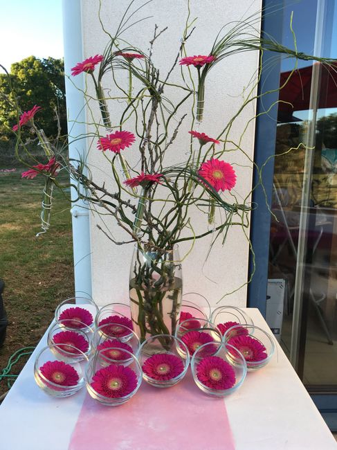 Coucou à toutes ! J'ai besoin de vos avis :-) Je réfléchis tout gentillement à ma décoration des tables, et je me demande si je vais mettre des fleurs comme centre de table ou non, (car de 1 c'est un sacré budget et après qu'en faire de toutes ces...