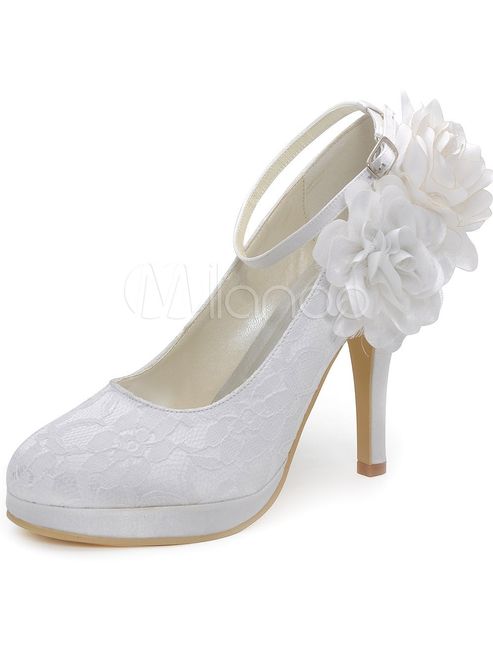 Coucou ! On commence la première étape de ce jeu avec le choix des chaussures ! Alors, dans votre nouveau rôle de styliste de mariage, quelle est, pour vous, la paire de chaussures qui ira le mieux à cette mariée ? Je vous rappelle la robe de mariée...