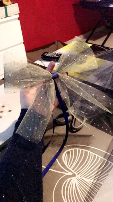 Bonjour les filles jai achete du simple ruban en blanc et l'autre en violet comme la salle que j'ai coupé en plusieurs morceaux et je donnerai aux invités quand ils arrivent chez moi cest Comme ca que ca se fait dhabitude ? Des fois on voit dès jolis...