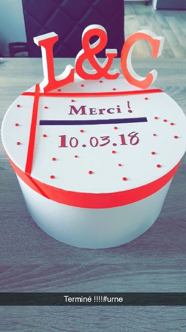 Coucou tout le monde! A J-47 elle est là !!! Ma deuxième précieuse. Et ça y est j'ai enfin réussi à finir mon urne!! Ce n'est pas du grand art mais monsieur l'adore!!