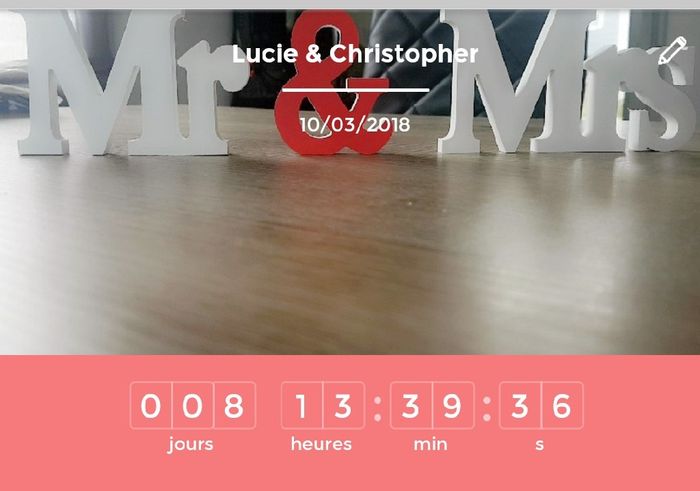 Ça y est on perd la dernière dizaine... Le 10 mars nous seront mariés. Les derniers préparatifs se passent bien on est hyper bien avancé. Il manque juste à acheter les bonbons pour le Candy bar et ce sera bon! J'ai hâte mais en même temps je stresse...