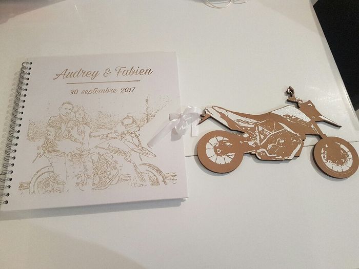 Coucou à toute petit à petit les préparatifs avance nous avons comme thème la moto donc voici quelque photo- notre livre d or & la moto de chéri que nous avons fais faire que nous mettrons sur notre table de honneur -les noms de table ceux avec...