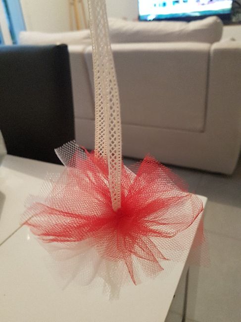 Voilà que j ai fais ma boite a alliance j en suis fière (test avec la bague de fiançaille) Et 1 er essai pompom je sais je peux mieux faire ....