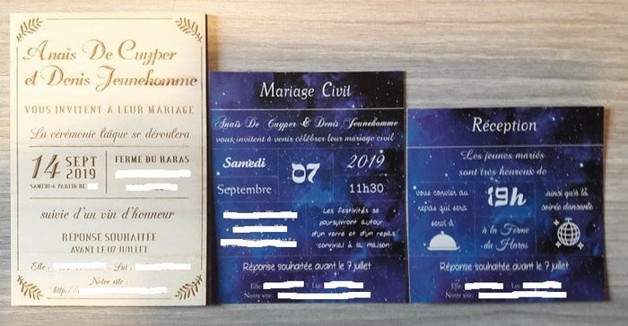 Coucou les brides, Mes faire-parts sont enfin arrivés!!! Je ne m'attendais pas à ce que ça prenne autant de temps par contre pour nouer l'ensemble et réaliser les enveloppes....pfffiou! Mais trop contente du résultat Voilà voilà bonne continuation...