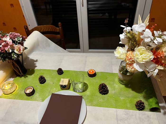 Bonjour tout le monde Je me marie le 23 août 2025, thème champêtre. Niveau déco, nous avons des fleurs dans des pots de compote Andres des bougeoirs en bois et en pot de yaourt en verre avec de l’eau et bougies flottante des pommes de pins, d’autre...
