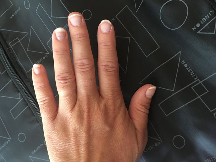 Bonjour tous le monde !!Voila ce matin à Jour J -3 du mariage, jai fai ma french, maigres mes petite main et mes ongle court !!!Je suis contente du résultat !!