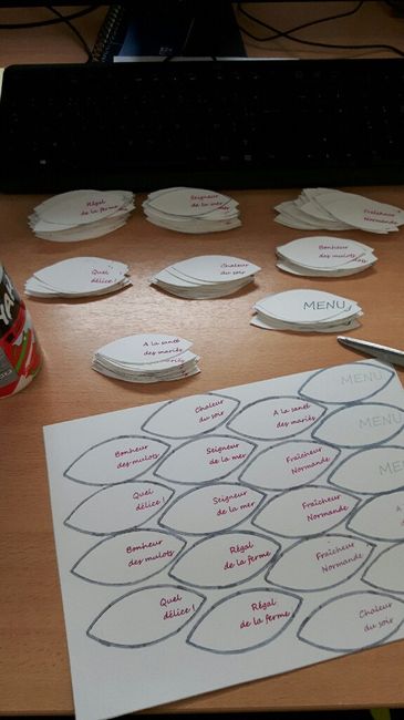 Coucou Juste un petit post pour vous montrer les préparatifs de mon menu. Je fais le menu en forme de fleur, j'ai environ 600 pétales à faire 😨 allez motivation motivation 🖒
