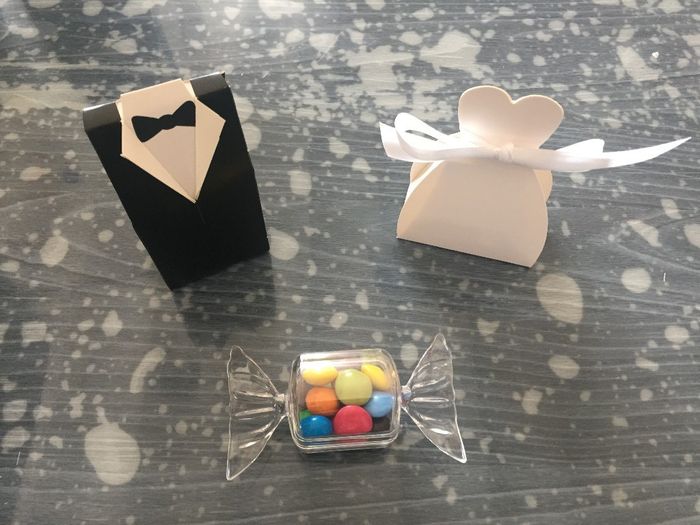 Cet après-midi la belle fille et moi avons préparé tous les petits contenants dragées ! du coup maintenant je sais ce qu'il me reste pour mettre au VDH et pour mettre sur les tables au repas , il ne manque plus que les stickers que je mettrais au...