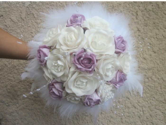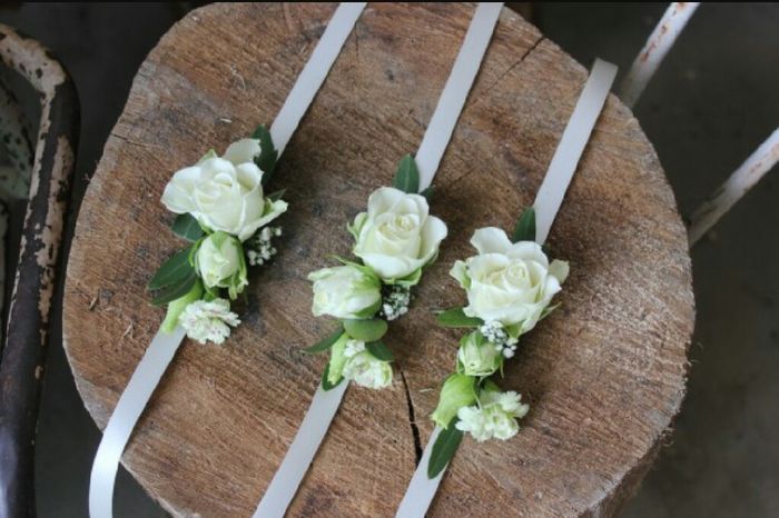 Pour les hommes une boutonnière avec une rose parme et mon futur une boutonnière et pour mon mari une rose blanche pour ma temoin j ai décidé de lui faire faire un bracelet