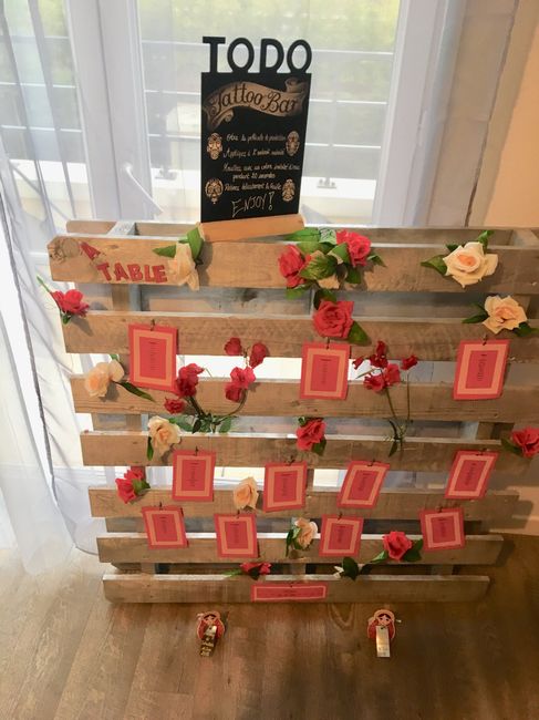 Coucou les filles ça sent la fin de l’organistation et la fête 😛 -tableau tatoo bar -dragées -plan de table OKKKKK 👌🏾