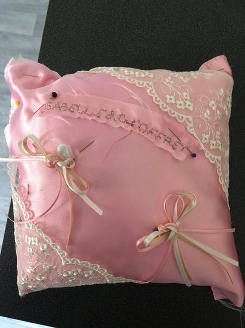 Coucou les filles , voici une ébauche de notre coussin d'alliance ❤️ , certaines chose doit etre retravaille mais j'ai déjà hate d'y voir nos alliances poser dessus 💍 Quelle chance d'avoir une belle maman , couturière et creatrice 😂