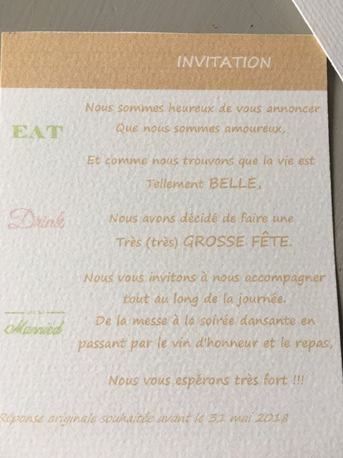 Hello les BTB ! Est-ce que certaines d'entre vous ont choisi ou écrit elles-mêmes un texte original, plutôt rigolo et non conventionnel svp ??? Car on n'a pas du tout envie du texte classique mais on sêche ... Merci :-)