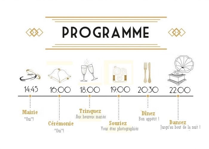 Bonjour tout le monde ! Nous nous marions en juin 2018 et notre thème est Gatsby : les années 20 On a choisi ce thème pour le côté Vintage et "chic". Nous avons fait appel à une décoratrice pour la salle et les couleurs dominantes seront l'or, le...
