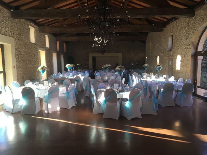Et voilà. Salle terminée. On a bien bossé ! Je ne pensais pas être aussi fatiguée ce soir 😆. Bon mariage aux mariés de demain. Perso le stress monte de plus en plus😬.