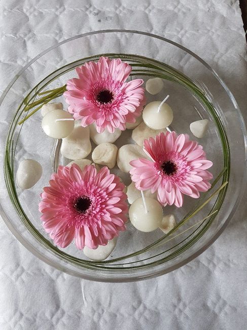 Bonjour tout le monde, aujourd'hui nous avons fait un essai pour les centres de table.Qu'en pensez vous ? Est ce qu'il faudrait rajouter quelque chose d'après vous ?