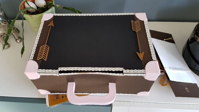 Et voilà premier atelier manuelle pour notre mariage. J'ai commencée par notre urne !! Encore quelques petites choses à fignoler par exemple la feuille noir sur le dessus est une ardoise Qu'en pensez-vous ?