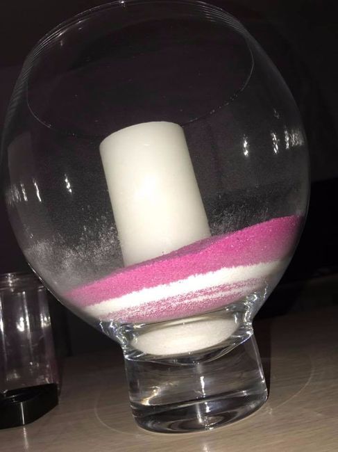 Bonjour à toutes et tous Voila, on a commencé a faire des essais pour le centre de table et nous avons eu notre coup de coeur pour ce style de centre de table. L'idée principale est de mettre par du sable décoratif de couleurs fushia et blanc en...