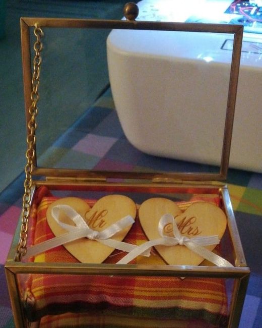 Bonne année les futures mariées! Voici mon premier travail de couture et pas des moindres: notre porte alliances! J'ai récupéré une boite aux encombrants, de la mousse d'un canapé jeté par mes voisins, deux boutons perles au fond d'un tiroir, une...