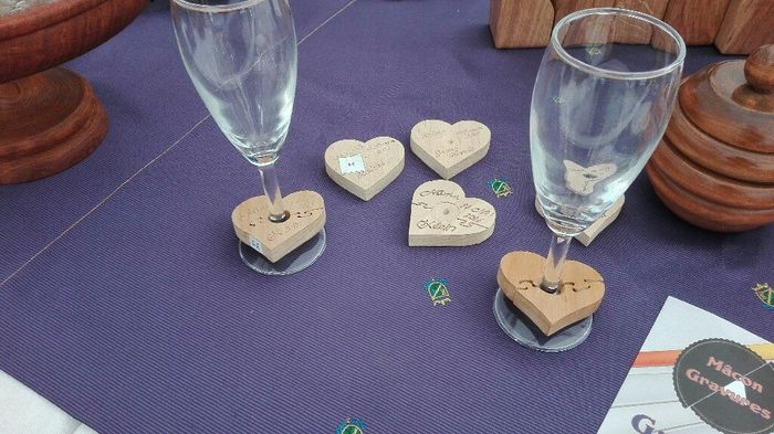 J ai vu ça... des coeurs en bois qui se mettent au pied du verre. Et que les invités peuvent remmener. J aurai gravé que les lettres de notre prénom, pour que les gens puissent s en resservir facilement... Vous en dites quoi? Mon thème c est nature,...