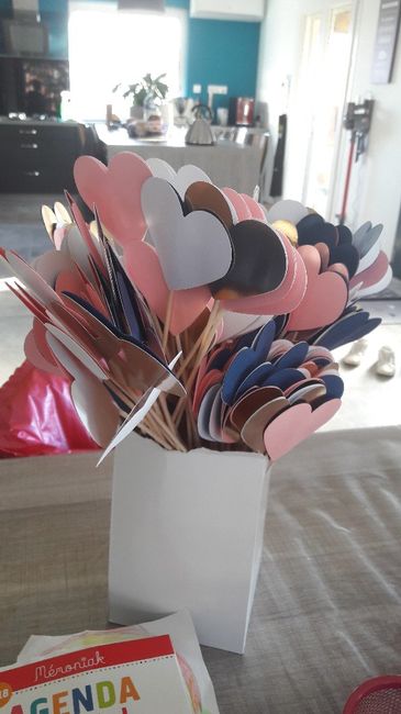 Bonjour que pensez vous des boîtes que j'ai fais pour les témoins filles ? Il y a une bougie. Un marque page. Des masques. Un désinfectant main. 1 paquet de bonbons. Un échantillon parfum. Et je vais leur écrire une carte chacune. Vous en pensez...