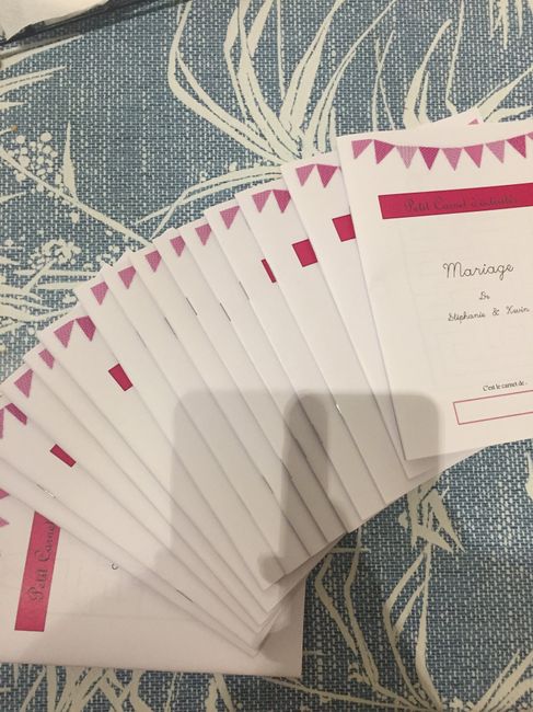 Il y a 3118 joursSalut les futur(e)s marié(e)s. Ce week end j'ai terminé mes petits livrets d'activité pour enfants. Enfin j'hésite encore à ajouter un petit ruban au milieu. Je pense qu'ils vont etre content. Entre les coloriages, le jeu des erreurs, les mots...