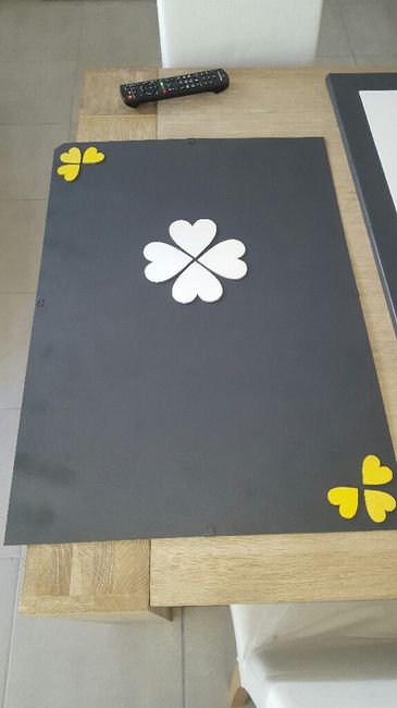Cadre "petits coeurs"Plan de tables Hello ! Malgré la pluie prévue au programme (samedi :'( ), je continue d'avancer ! Plan de tables : Ok Cadre livre d'or : Ok Panneau d'accueil : en cours