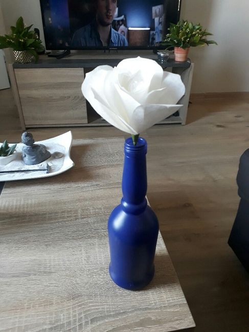 Salut les futures mariées adeptes du DIY. Alors pour mon mariage je prépare un centre de table bouteilles... Je pensais mettre des vraies fleurs dedans, et là, j'ai vu un tuto sur les fleurs en filtre à café. Quelqu'un en a-t-il déjà fait? Le rendu...