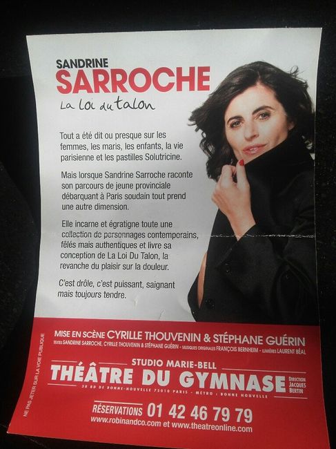 Apres un brunch, seance de spa avec massage d une heure trop bien ,gouter au château de versailles ,repas a la pizzeria et spectacle de sandrine sarroche intitulé la loi du talon spectacle illarrant. J ai passé une super journée entourer de mes amies...
