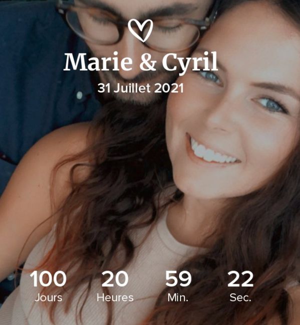 bonjour tout le monde ca y'est on passe la barre des 100 jours (enfin demain plus exactement) un petit bonheur de la journée, une petite étape qui nous rapproche du jour j et vous vos compteurs?