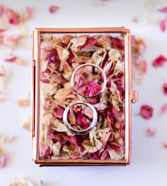 Bonjour ! Je vous écris ce soir car besoin d’un petit conseil 😊 Pour nos alliances nous avons fait construire une boîte avec nos initiales gravées (photo juste en dessous). J’ai acheté une rose artificielle blanche et les alliances reposeront dessus....