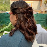 Il y a 2022 joursEt voilà, on profite du dernier jour de présence de ma belle-sœur coiffeuse à la maison pour un deuxième essai coiffure pour le mariage, cette fois avec les cheveux détachés.