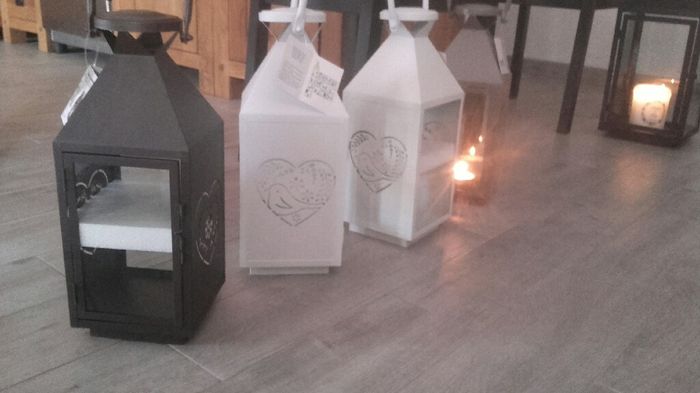 Jai trouve des petites étiquettes en bois pour les places : les 100 a même pas 10 euros 😮😮😮Jai trouvé 2 lanternes noires a 25 euros les 2. Elles sont super grande (23/23/52hauteur)Puis 4 lanternes plus petites pour 26 euros mais juste trop belles...