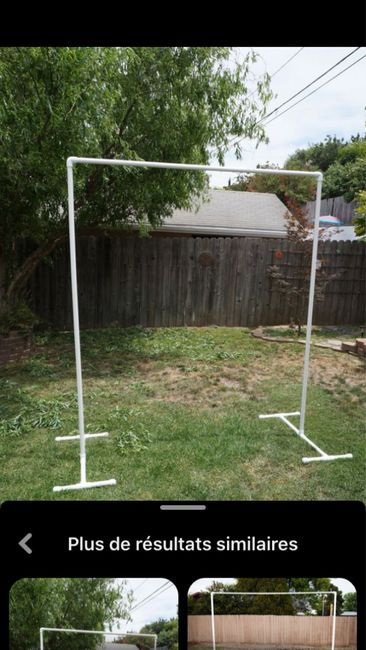 Bonjour à toutes! Mariage le 20juin! Je garde espoir 😿. Est ce que certaine d’entre vous on tente l’arche en pvc?? Avec des tuyaux ? Ça a l’air top mais j’ai peur que ce soit léger ... Ça ne coute même pas 10euros le tout 🤩 avec une jolie voilage ça...
