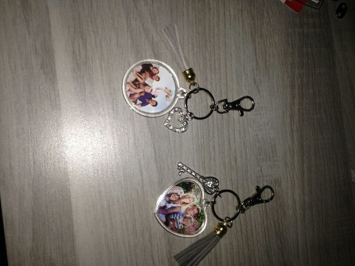 coucou les filles alors voilà des petit porte clef pour remercier mes témoins mais pour les deux homme je n'ai aucune idée qu'offrez vous? faite pas attention a la poussiere on est en plein travaux lolporte clefporte clef porte clef
