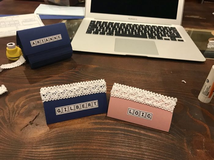 Coucou les filles Ă 71 jours du mariage les Diy sâenchaĂźnent, je suis en train de finir mes porte noms, vous en pensez quoi? Moi jâai lâimpression quâil manque quelque chose