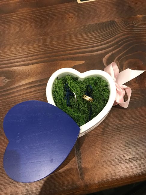 Coucou , Ă 15 jours tout du mariage jâai enfin fini notre porte alliances commencĂ© il y a de ça 1 an LOL đ. Dite moi ce que vous en pensez. Et pour la petite histoire, la boĂźte est celle qui contenait ma bague de fiançailles lors de sa demande en...