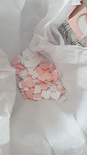 voilà je me suis lancée dans la découpe de petits coeurs pour les lancer a la sortie de l'église je me suis dit avec mes chutes de papier de mes faire part pourquoi pas